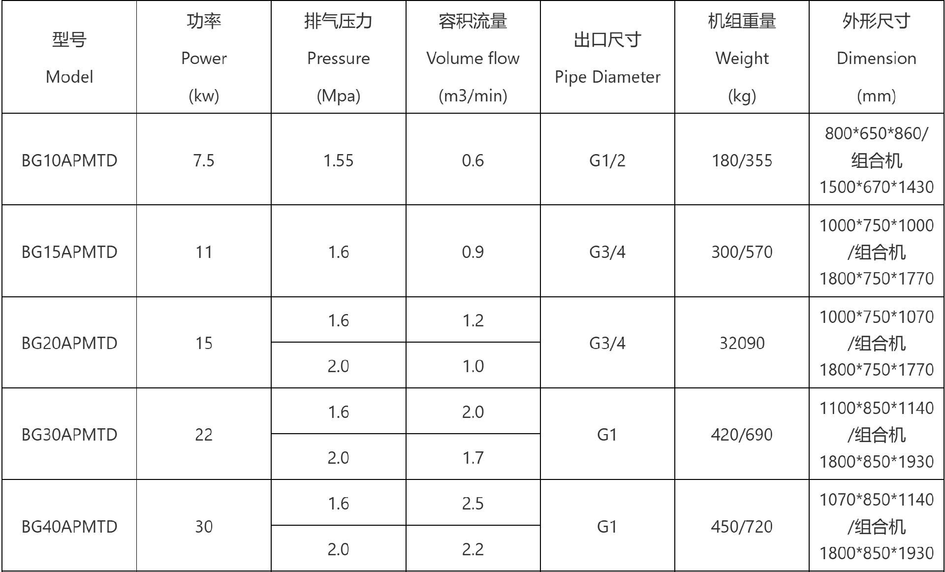 注:型号带TD为一体式机型,不带II为单级压缩机型,带II为双级压缩机型。